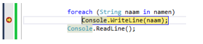 Move the cursor to the line Console.WriteLine(name); and press F9. You will now see a BreakPoint appear in the margin (The red dot).